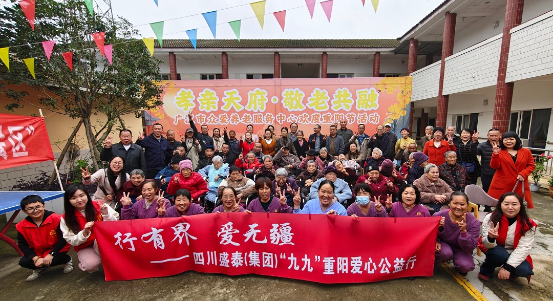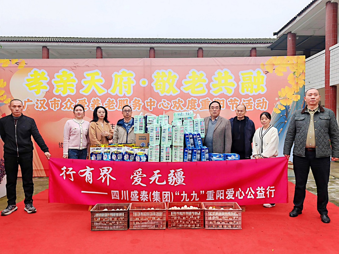 为弘扬中华民族重阳节尊老爱老的传统美德,让老人们在佳节中感受温情,2025年10月29日,四川盛泰(集团)党支部组织的“行有界 爱无疆”公益行再度启程。总经理黄天跃带领部分管理干部、工会委员及党员代表,承载全体“盛泰人”的爱心与祝福,走进广汉市众爱养老服务中心,为老人们送去节日问候与贴心关怀。