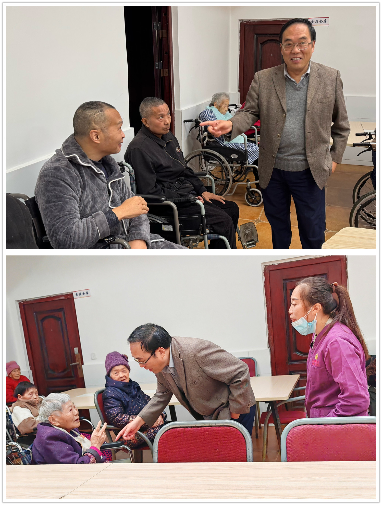 简短的捐赠仪式后,黄总一行参观了老人们的居住房间与活动区域,细致询问老人们的身体状况,围坐在一起倾听老人们讲述年轻时的经历、养老中心的闲闻趣事。几句家常话悄然拉近彼此距离,温馨对话中,陌生感渐渐消散。
