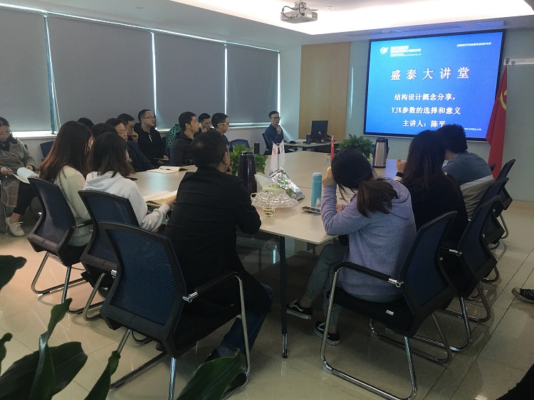 2019年10月29日下午14点,四川盛泰建筑勘察设计有限公司盛泰大讲堂之“结构设计概念分享,YJK参数的选择和意义”在成都公司会议室开讲。本期讲堂主讲人是我司一级注册结构工程师:陈平。各分公司均积极参与此次大讲堂。